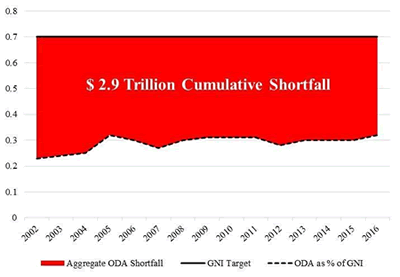 To put these numbers in perspective, OECD Development Assistance Committee (DAC) members contribute, on average, $113 billion per year to Official Development Assistance (ODA). At the International Conference on Financing for Development in 2002, these nations promised to contribute 0.7% of their gross national incomes to ODA. But since 2015 and the start of the 2030 Agenda, average country efforts remain well below the 0.7% target. Today, the cumulative shortfall in ODA (2002–2016) stands at $2.9 trillion in 2016 constant prices. So, in an environment of faltering multilateralism where will the additional funding come from?