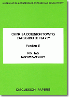 Discussion Paper No. 165 by Yuefen Li Downloads CHINA´S ACCESSION TO WTO: EXAGGERATED FEARS? (UNCTAD/OSG/DP/165) 16 Jan 2003 English Sign up for our Insights newsletter. Get trusted intelligence on global trade, the economy and development in your inbox. Subscribe RelatedSeriesDiscussion Paper (Series)