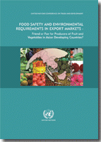 Downloads Food Safety and Environmental Requirements in Export Markets - Friend or Foe for Producers of Fruit and Vegetables in Asian Developing Countries? (UNCTAD/DITC/TED/2006/8) 31 May 2007 English Sign up for our Insights newsletter. Get trusted intelligence on global trade, the economy and development in your inbox. Subscribe RelatedTopicsTrade and environmentCommoditiesSeriesTrade, Environment and DevelopmentCommodities: Agriculture KeywordsAgricultural PolicyOrganic AgricultureSustainable agricultureCommodity Standards