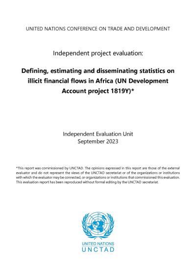 Downloads Independent evaluation of the Development Account Project 1819Y: Defining, estimating and disseminating statistics on illicit financial flows in Africa 20 Sep 2023 English Management response to the Independent Evaluation of Development Account Project 1819Y: Defining, estimating, and disseminating statistics on illicit financial flows in Africa 20 Sep 2023 English Sign up for our Insights newsletter. Get trusted intelligence on global trade, the economy and development in your inbox. Subscribe RelatedProgramsEvaluation at UNCTADIllicit Financial FlowsProjectDefining, estimating and disseminating statistics on illicit financial flows in AfricaSeriesEvaluation Reports - Project KeywordsTechnical cooperationIllicit financial flows