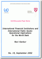 G-24 Discussion Paper No.19 by Ravi Kanbur Downloads INTERNATIONAL FINANCIAL INSTITUTIONS AND INTERNATIONAL PUBLIC GOODS: OPERATIONAL IMPLICATIONS FOR THE WORLD BANK (UNCTAD/GDS/MDPB/G24/19) 22 Jan 2003 English Sign up for our Insights newsletter. Get trusted intelligence on global trade, the economy and development in your inbox. Subscribe RelatedSeriesG-24 Discussion Papers (Series)